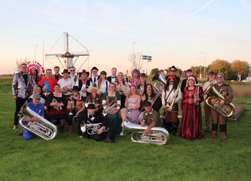 De avond werd aan elkaar gepraat door showhost Jan Rob van Manen die dat met verve deed. De Maestro’s hadden een eigen team, het publiek moest actief meedoen om de overwinning in de wacht te slepen. Zo werd er met pijl en boog op dirigent Henk geschoten, werd er een paardenrace gehouden en moesten de teams ringwerpen. Al met al een interactieve en swingende avond waarbij de band er ook nog eens prachtig uitzag. Zij waren verkleed als allerlei filmpersonages en dat maakte er een mooi kleurrijk geheel van. Bekijk hiervoor de fotoreportage van Arie van Veen.